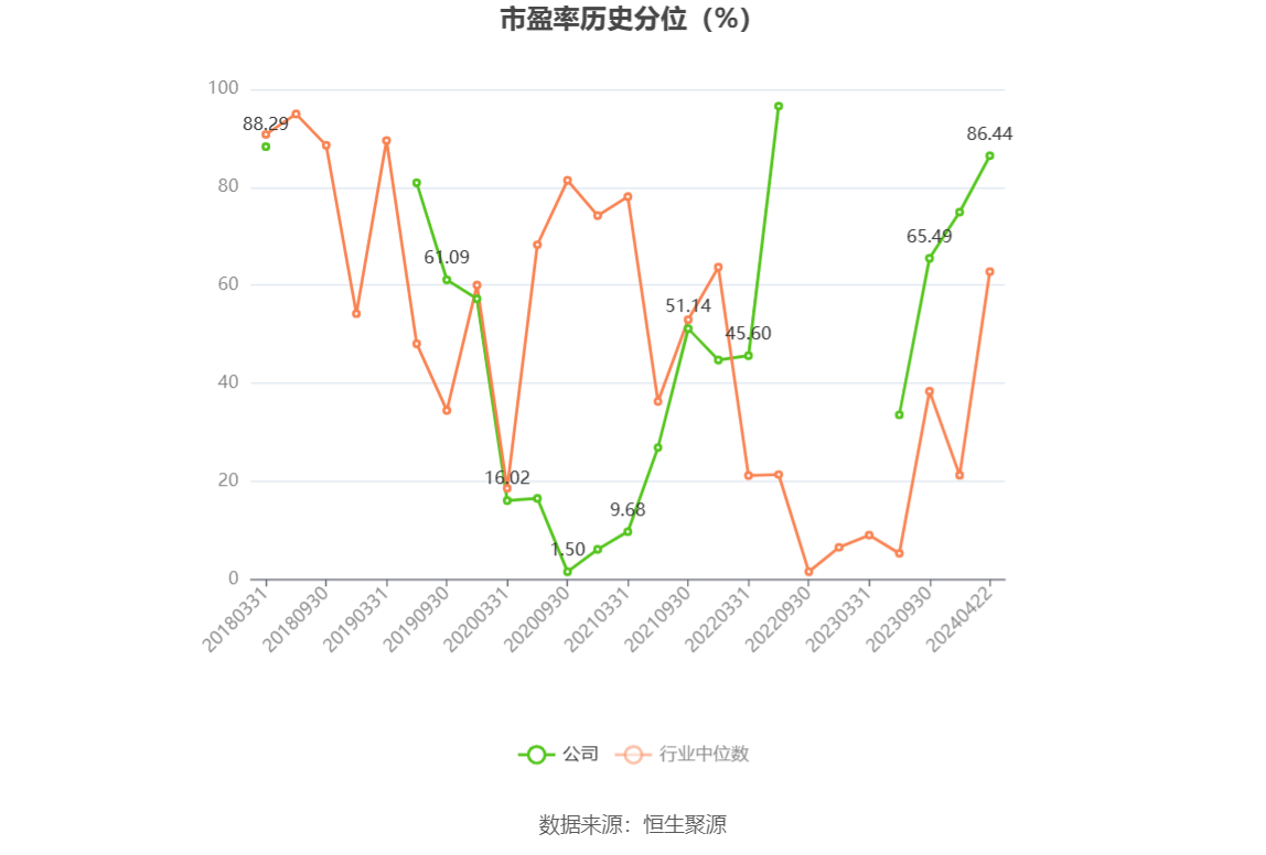 市盈率为负时,不显示当期分位数,会导致折线图中断。