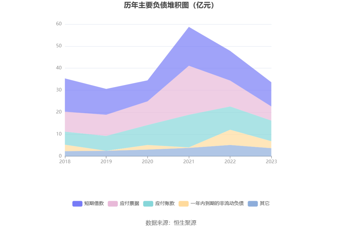 负债重大变化方面,截至2023年年末,公司应付票据较上年末减少45.71%,占公司总资产比重下降4.99个百分点;一年内到期的非流动负债较上年末减少54.48%,占公司总资产比重下降3.81个百分点;短期借款较上年末减少18.38%,占公司总资产比重下降0.47个百分点,主要系本报告期末银行借款减少;其他流动负债较上年末减少94.95%,占公司总资产比重下降1.55个百分点。