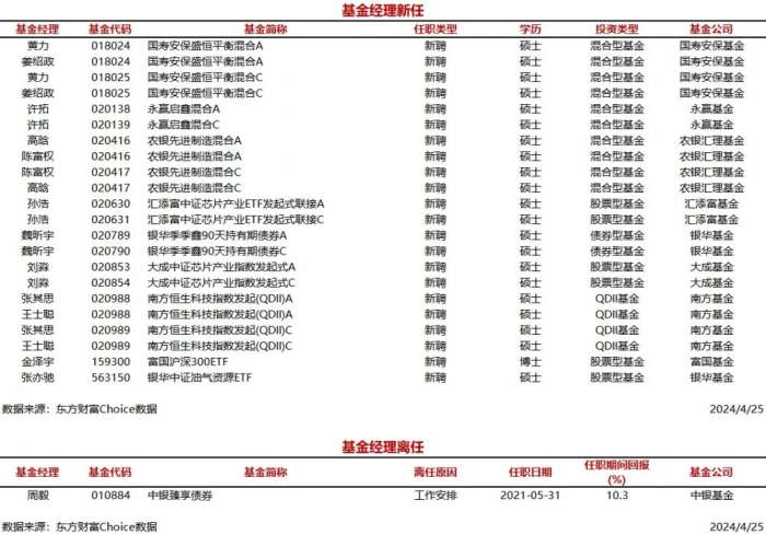 (原标题:今日新聘基金经理12人,离任1人)