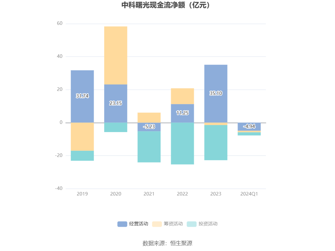 2024年第一季度,公司经营活动现金流净额为-4.94亿元,同比减少2.68亿元;筹资活动现金流净额-9102.95万元,同比减少1.67亿元;投资活动现金流净额-1.91亿元,上年同期为-3.41亿元。