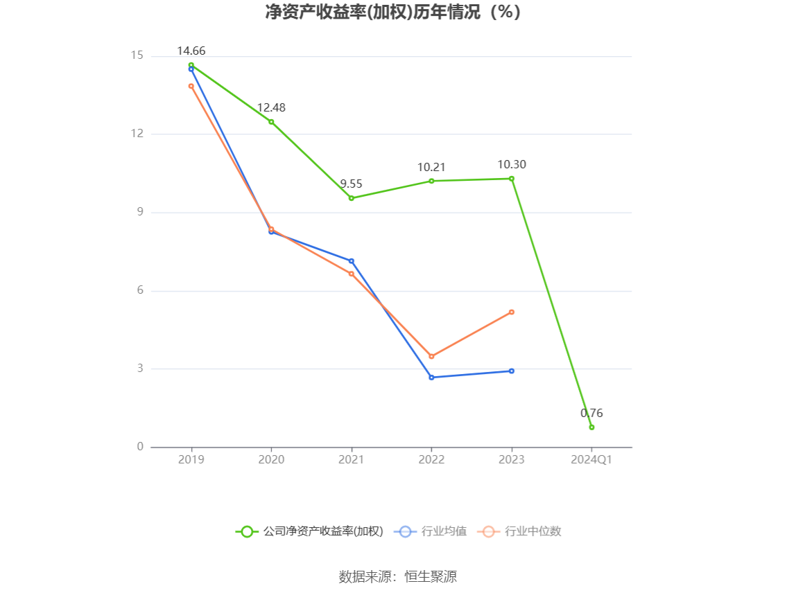 数据显示,2024年第一季度公司加权平均净资产收益率为0.76%,较上年同期下降0.01个百分点;公司2024年第一季度投入资本回报率为0.54%,较上年同期下降0.16个百分点。
