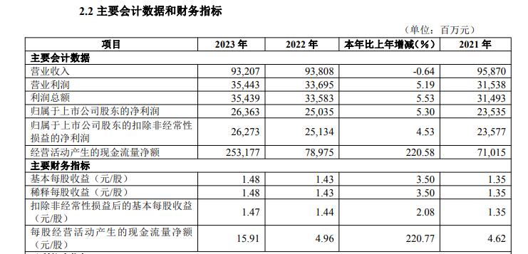 4月29日晚间,华夏银行(600015.SH)发布了2023年年报。报告期内,华夏银行实现营业收入932.07亿元,较上年末下降0.64%;归母净利润263.63亿元,较上年末增长5.30%。