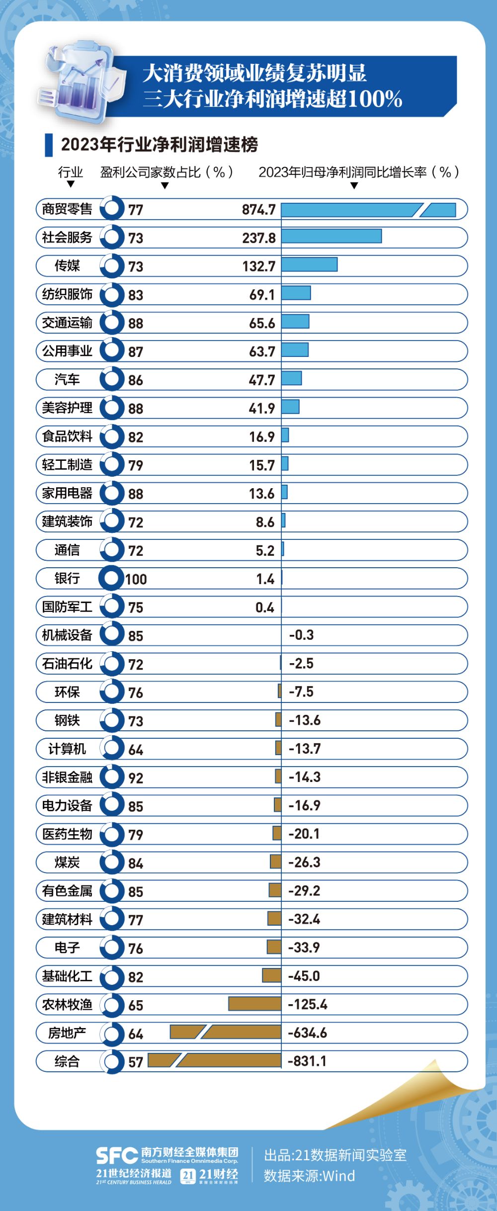 三大行业净利润增速超100%