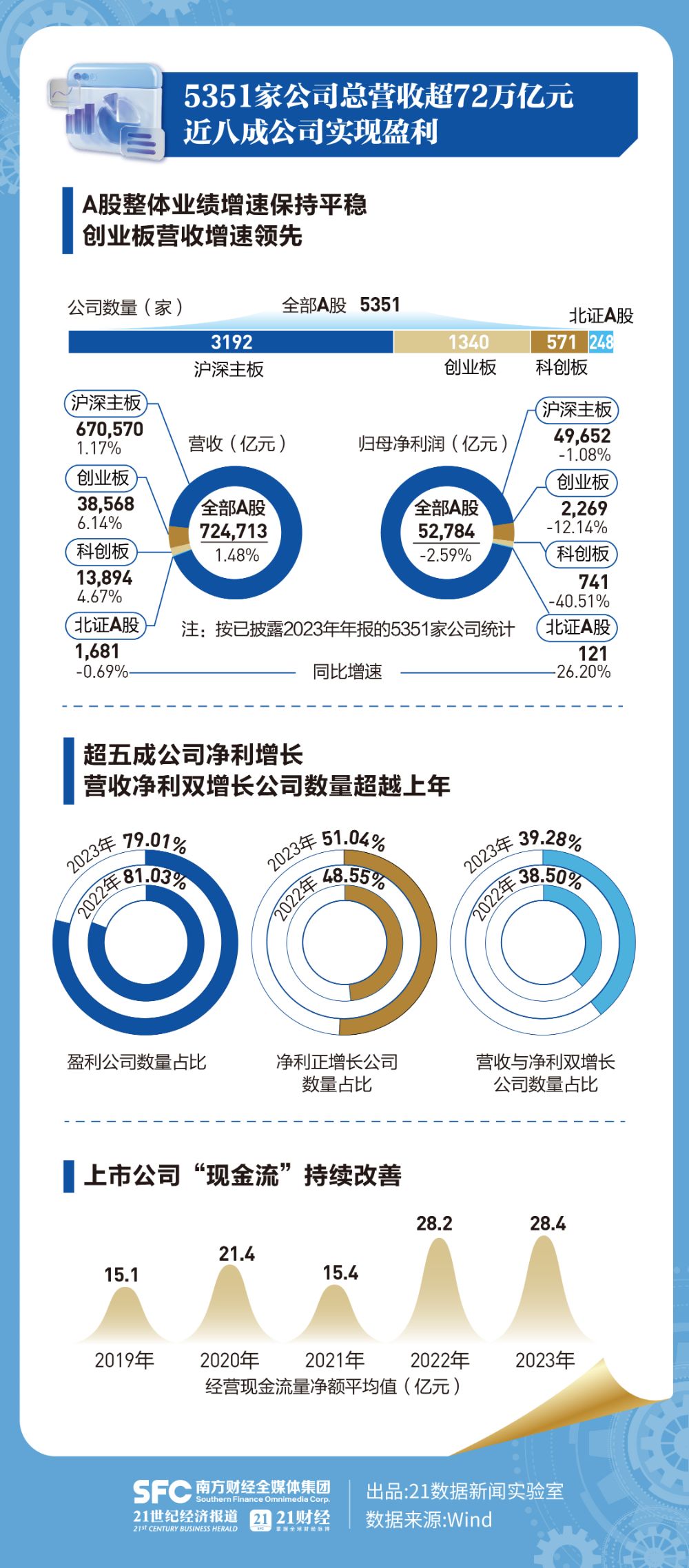 2023年A股上市公司年报披露收官,A股公司发展呈现哪些新特点?折射了经济发展的哪些趋势?21数据新闻实验室为你进行大数据解读。
