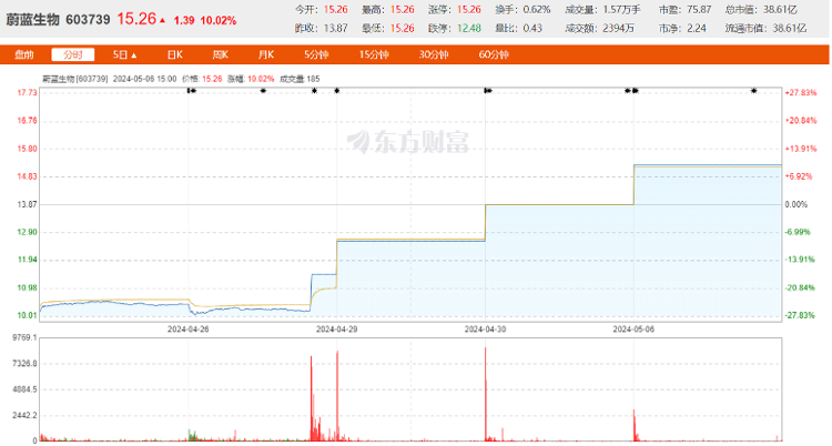 蔚蓝生物近五个交易日情况