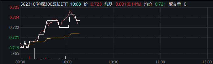 相关ETF方面,沪深300成长ETF(562310)上涨0.14%,溢折率0.07%,盘中频现溢价交易。资金流向方面,Wind数据显示,该ETF连续2日获资金净流入。