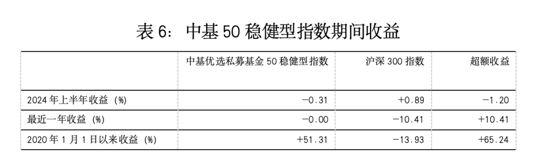 2024年上半年,中基50稳健型指数小幅下跌0.31%,近一年表现基本持平,成立以来涨幅达到51%。