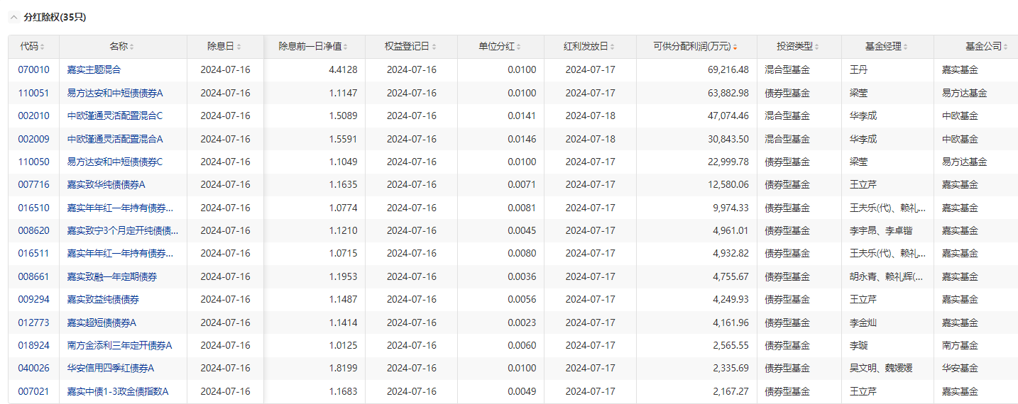 (原标题:16日35只基金分红除权 累计可供分配利润29.66亿元)