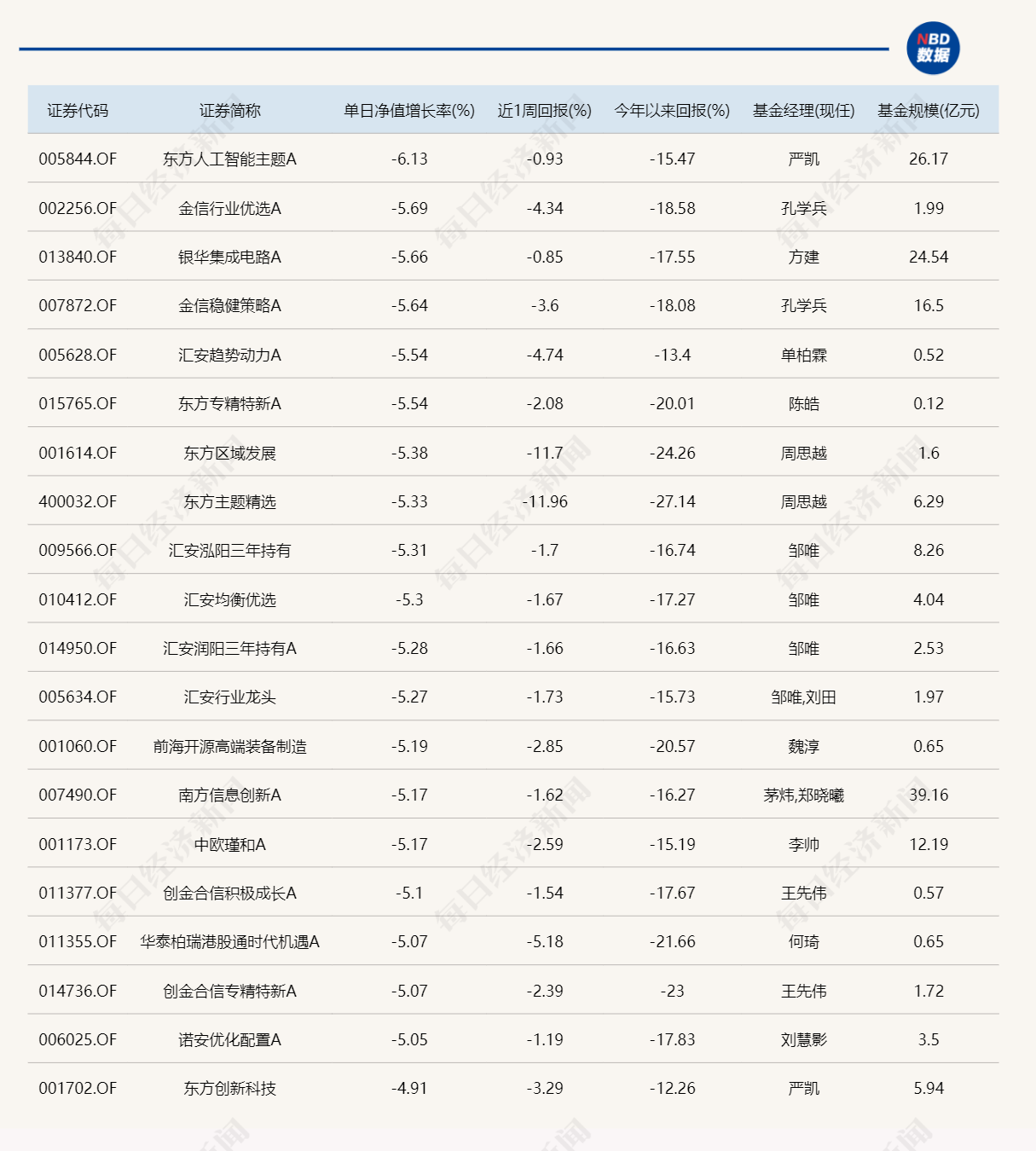 今日领涨基金涨幅不足1%,领跌产品跌超6%