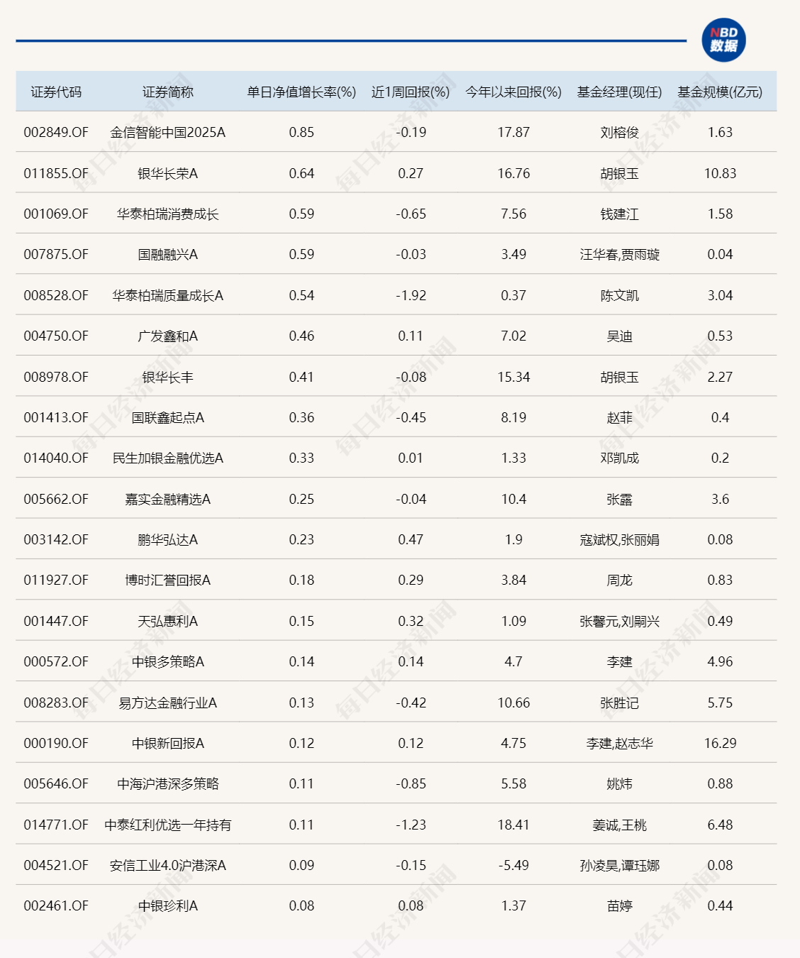 (原标题:今日领涨基金涨幅不足1%,领跌产品跌超6%)