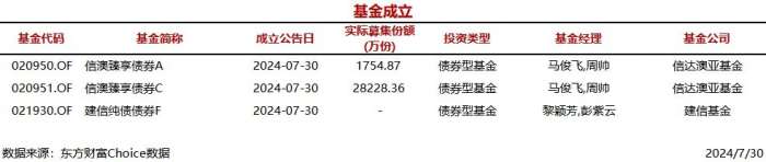 今日3只基金公告成立
