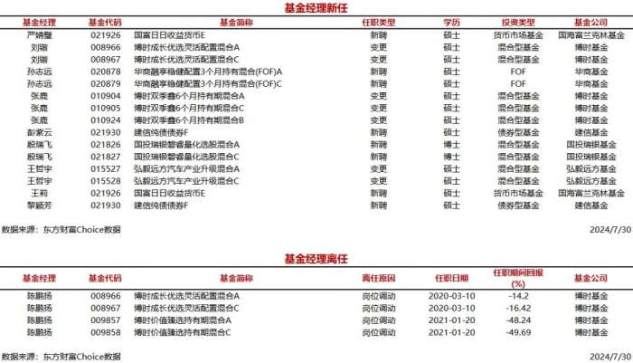(原标题:今日新聘基金经理9人,离任1人)