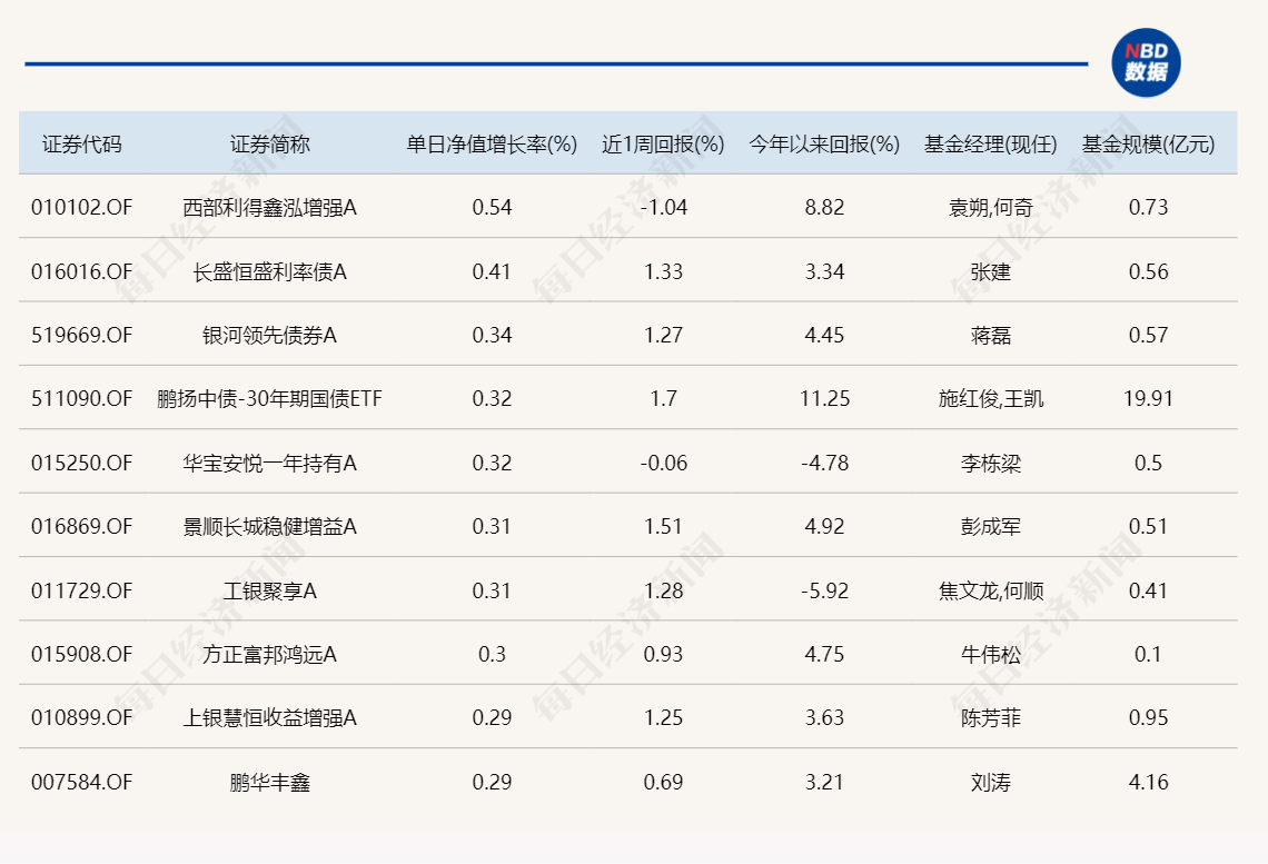 3.单日债基涨跌幅榜