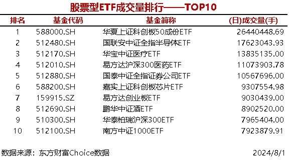 (原标题:5只股票型ETF成交量超1000万手,华夏上证科创板50成份ETF成交2644.04万手)