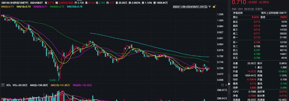 相关ETF方面,截至发稿,科创100ETF(588190)涨0.28%,成交额超1800万,换手率0.98%,早盘交投活跃,溢折率0.07%,盘中频现溢价交易。