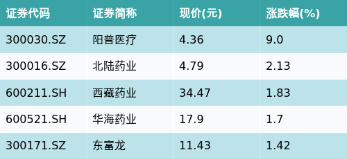 截至收盘,脑机接口主题涨跌幅最高的五只股票为:阳普医疗(300030.SZ)、北陆药业(300016.SZ)、西藏药业(600211.SH)、华海药业(600521.SH)与东富龙(300171.SZ)。详情见下表: