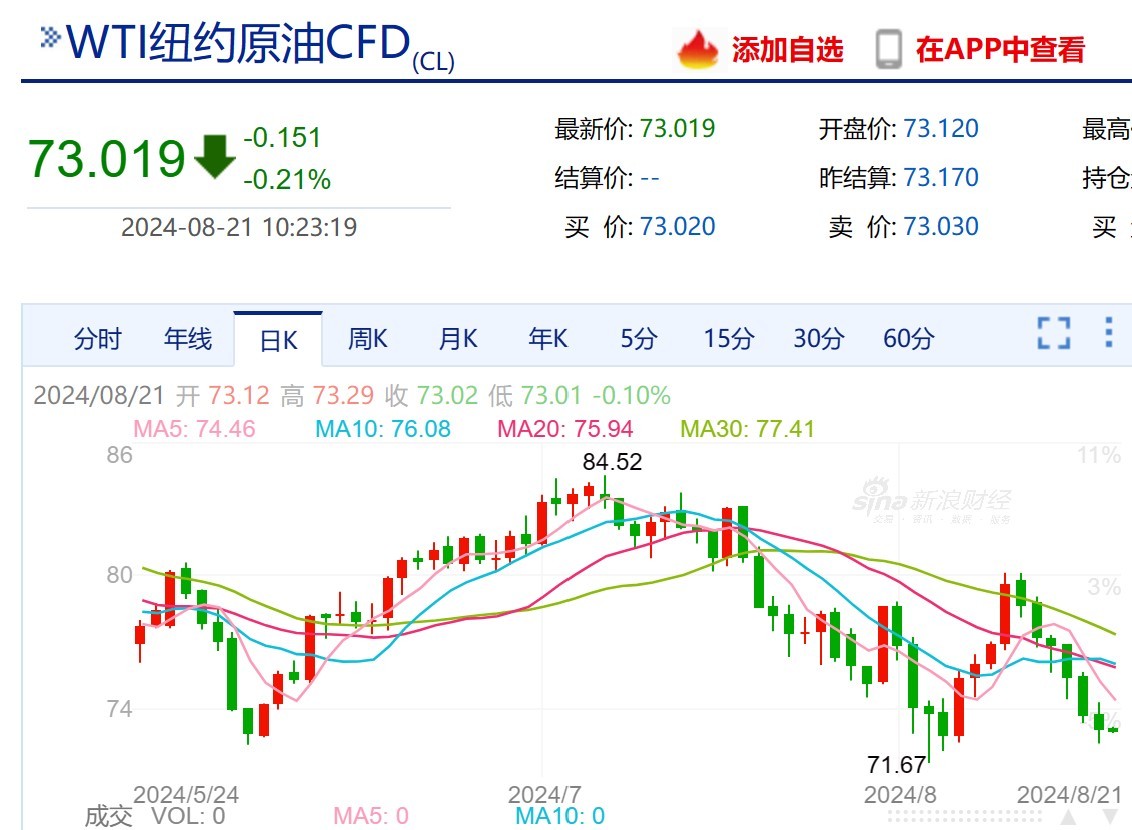 近期,国际油价持续回落,WTI纽约原油CFD已连跌6个交易日。