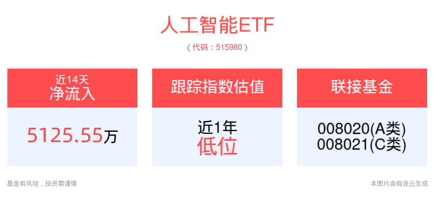 资金流入方面,拉长时间看,人工智能ETF近14个交易日内有8日资金净流入,合计“吸金”5125.55万元。