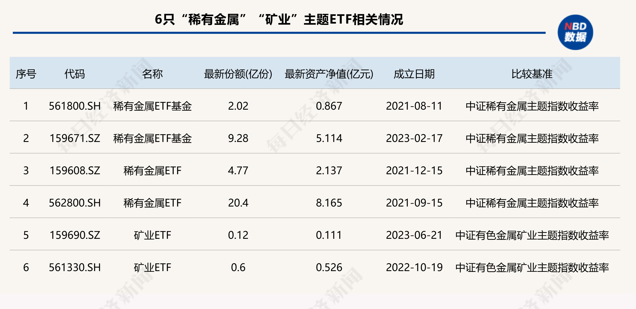 Wind数据显示,目前名称中含有“稀有金属”“矿业”的ETF共有6只,其中有3只产品的规模超过2亿元。