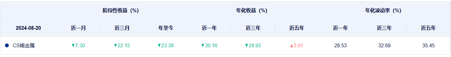 再从两个指数过往表现来看,中证有色金属矿业主题指数不管是近一年,还是近三年到近五年,表现都明显好于中证稀有金属主题指数。