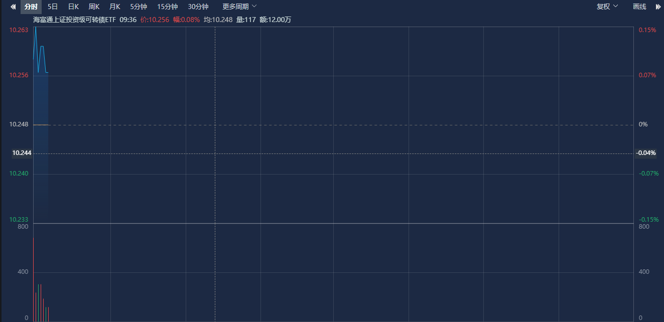 今日早盘,可转债市场开盘活跃。相关ETF方面,上证可转债ETF(511180)截至发稿上涨0.08%,成分券中,东材转债、苏租转债、蓝天转债涨超1%,天业转债、杭银转债、金23转债、彤程转债、奕瑞转债等多只转债飘红。