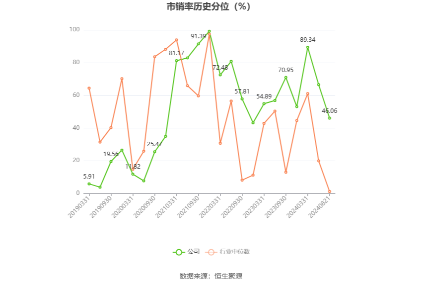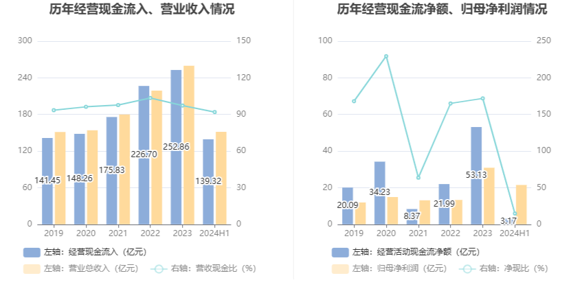 2024年上半年,公司营业收入现金比为91.94%,净现比为14.71%。