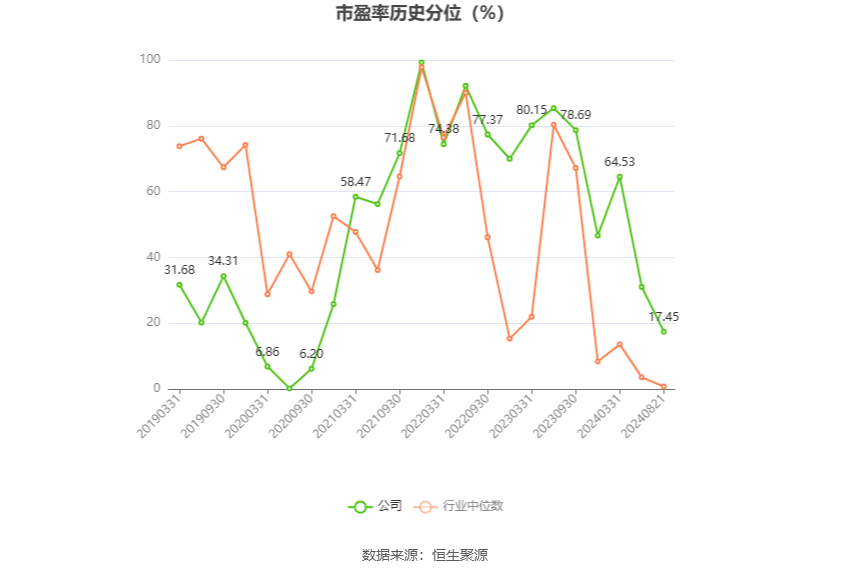 市盈率为负时,不显示当期分位数,会导致折线图中断。