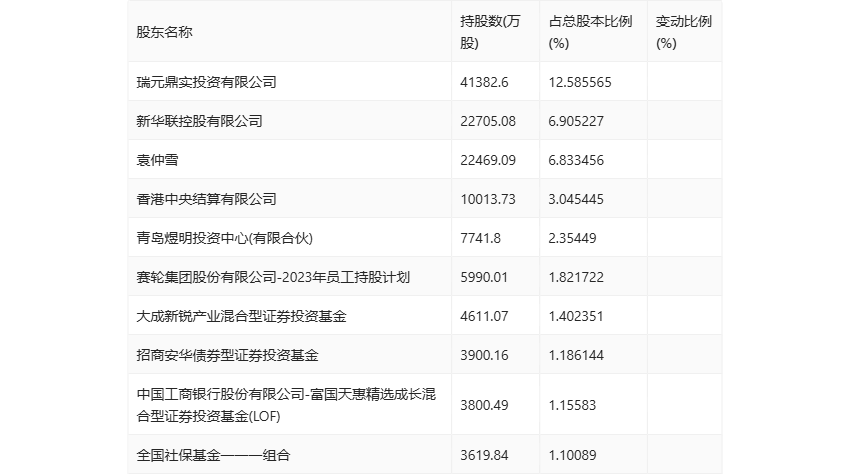 半年报显示,2024年上半年末公司十大流通股东中,新进股东为中国工商银行股份有限公司-富国天惠精选成长混合型证券投资基金(LOF),取代了一季度末的全国社保基金一零一组合。在具体持股比例上,新华联控股有限公司、香港中央结算有限公司、大成新锐产业混合型证券投资基金、招商安华债券型证券投资基金、全国社保基金一一一组合持股有所下降。