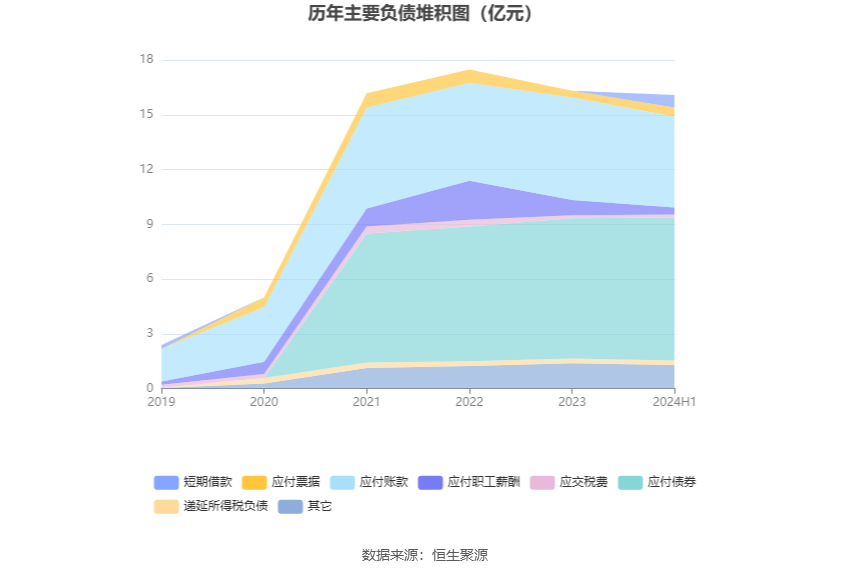 负债重大变化方面,截至2024年上半年末,公司应付账款较上年末减少11.48%,占公司总资产比重下降1.01个百分点;应付职工薪酬较上年末减少53.02%,占公司总资产比重下降0.78个百分点;应付债券较上年末增加1.83%,占公司总资产比重上升0.48个百分点;应付票据较上年末增加32.34%,占公司总资产比重上升0.23个百分点。