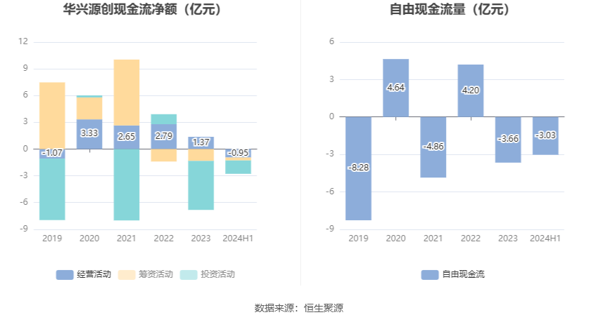 进一步统计发现,2024年上半年公司自由现金流为-3.03亿元,上年同期为-1.23亿元。