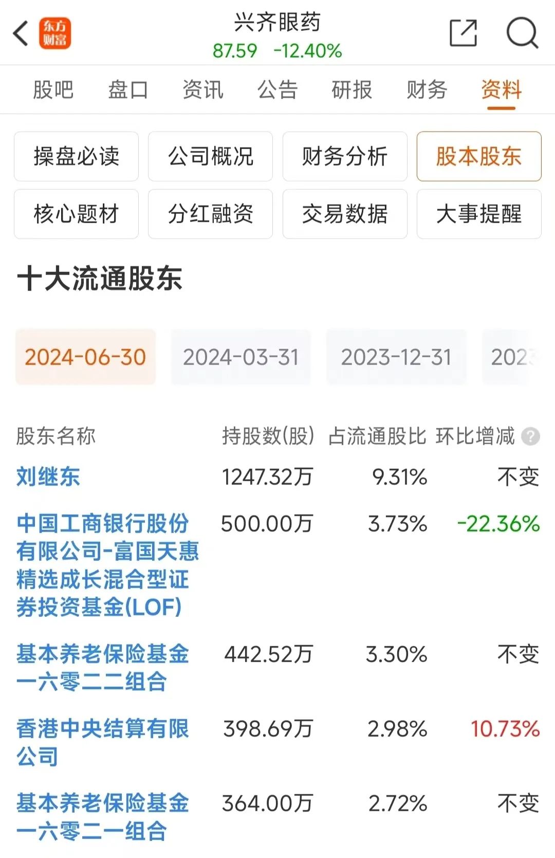 截至二季度末,兴齐眼药前十大流通股东名单当中出现多家机构。两只养老保险基金组合名列第3、第5位,持股在二季度期间未发生变动,期末合计持仓市值13.23亿元。