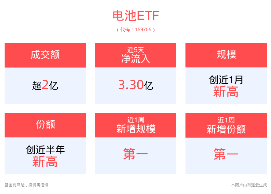 (原标题:电池板块回暖单周累计上涨5.75%,电池ETF(159755)单日“吸金”1.96亿元)