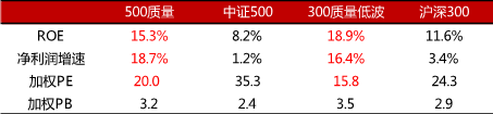 表1:质量指数基本面和估值情况