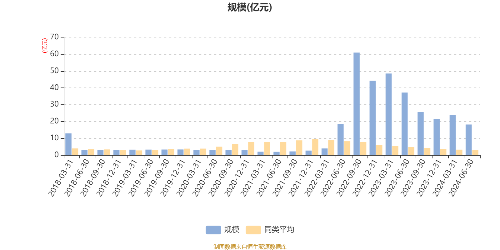 截至2024年上半年末,基金规模为18.23亿元,在同类可比基金中排名4/173,在灵活配置型基金排名113/1446。