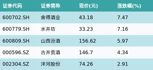 南方财经9月19日电,南财金融终端显示,今日次高端白酒主题走强,截至午间收盘(下同)上涨4.94%。持有次高端白酒主题股票的嘉实中证主要消费ETF(512600)早盘上涨3.4%,最新价报0.578元。截至上个交易日(9月18日),该基金近五个交易日净值(复权单位净值,下同)下跌4.68%,近一个月净值下跌12.0%。该基金自(20140613)成立以来净值增长率为180.09%,管理人为嘉实基金管理有限公司,基金经理为刘珈吟。截至午间收盘,次高端白酒主题涨跌幅最高的五只股票为:舍得酒业(600702.SH)、水井坊(600779.SH)、山西汾酒(600809.SH)、古井贡酒(000596.SZ)与洋河股份(002304.SZ)。详情见下表: