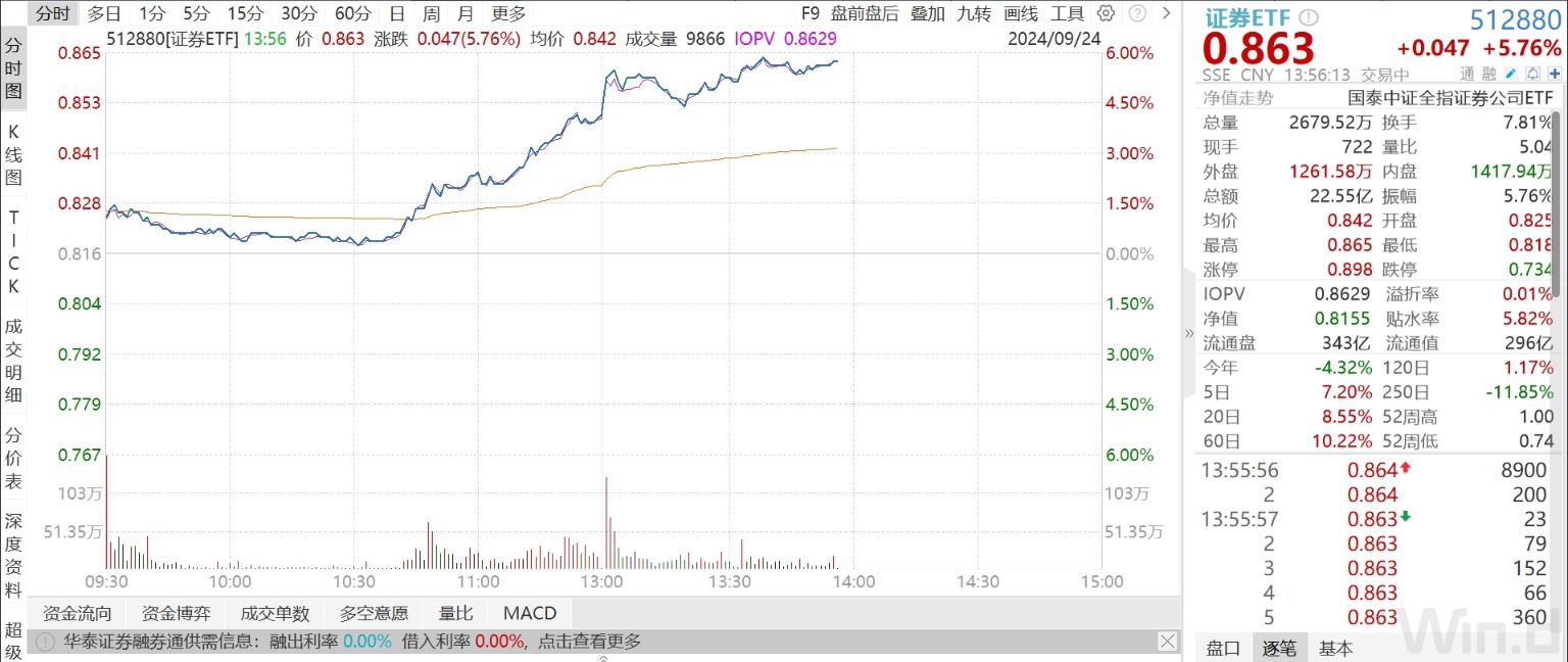 政策强刺激,大盘暴涨100点!证券ETF涨超5.7%
