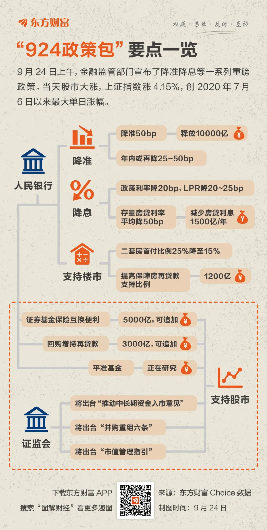 在当天上午国务院新闻办公室举行的新闻发布会上,中国人民银行行长潘功胜宣布了一些列重磅政策,包括降准、降息,下调存量房贷利率,降低二套房首付比例等重磅。