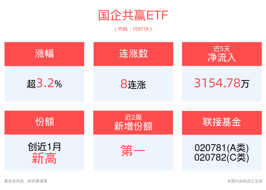 资金流入方面,国企共赢ETF最新资金净流入3154.78万元。拉长时间看,近5个交易日内,合计“吸金”3154.78万元。