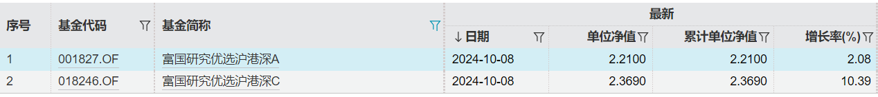 比如富国研究优选沪港深基金,A类份额的净值10月8日涨了2.08%,C类份额涨了10.39%。