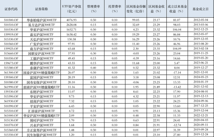 表:沪深300ETF综合情况来源:Wind,界面新闻整理