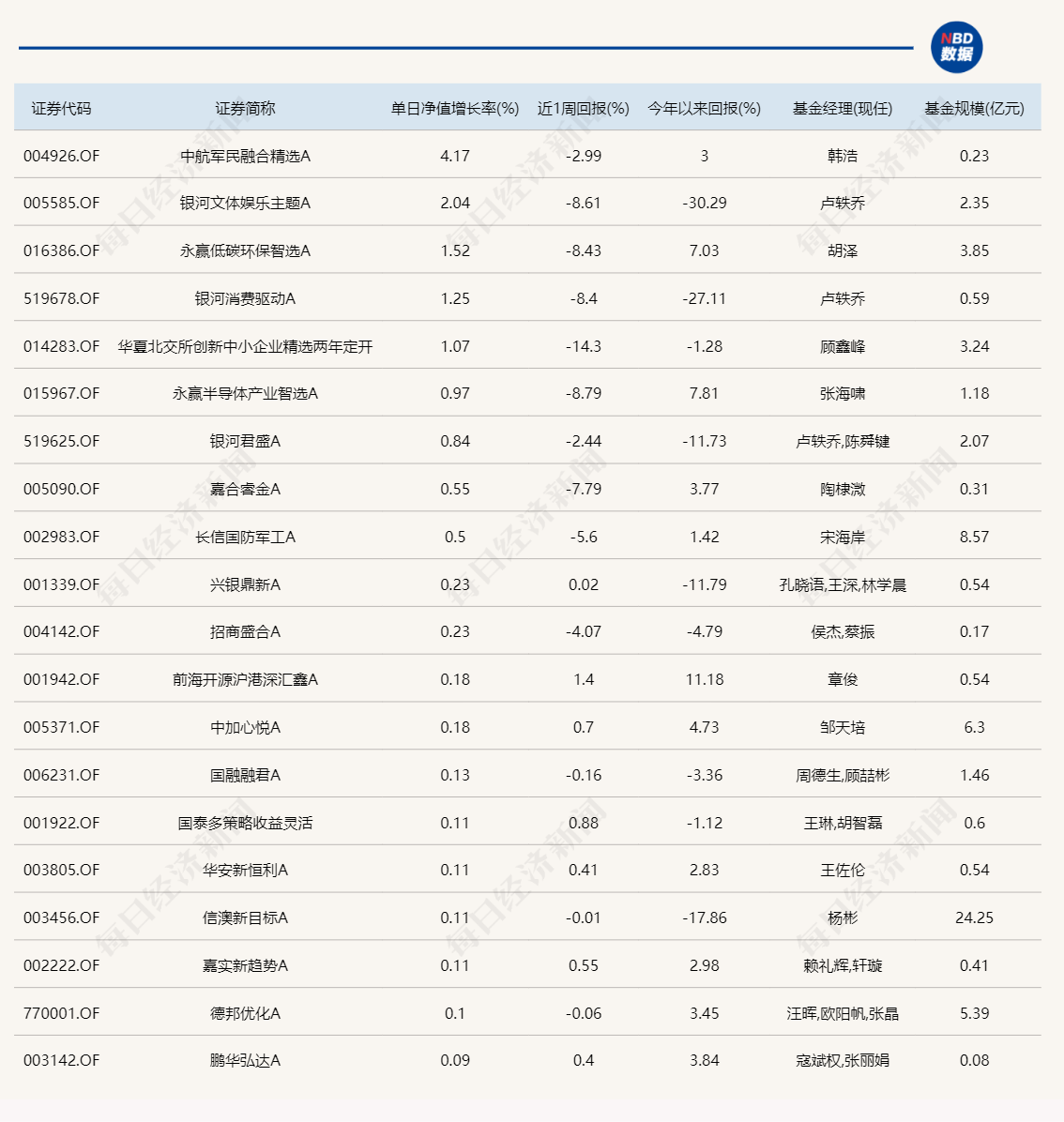 不到50只主动基金收涨 这只军工主题产品凭啥逆势大涨4%?
