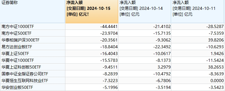 这一情况与昨日相仿,实际上,多只宽基ETF已连续两三天大幅净流出。如南方中证1000ETF近3个交易日已累计净流出超94亿元。