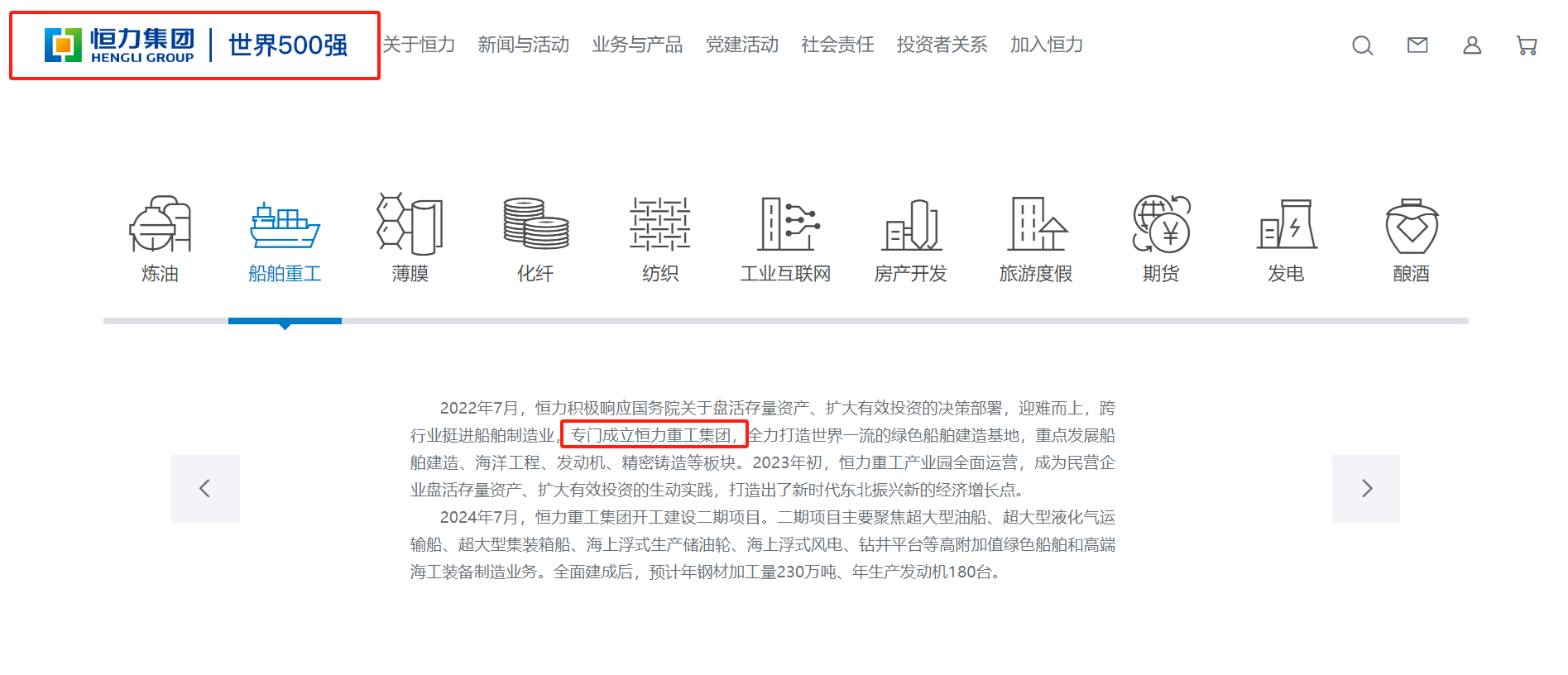 来自官方网站的资料显示,恒力重工的诞生始于2022年7月,恒力集团以21.1亿元成功竞拍收购闲置长达十年之久的原STX(大连)资产。自当年9月完成资产交割起,恒力重工正式进入造船业。