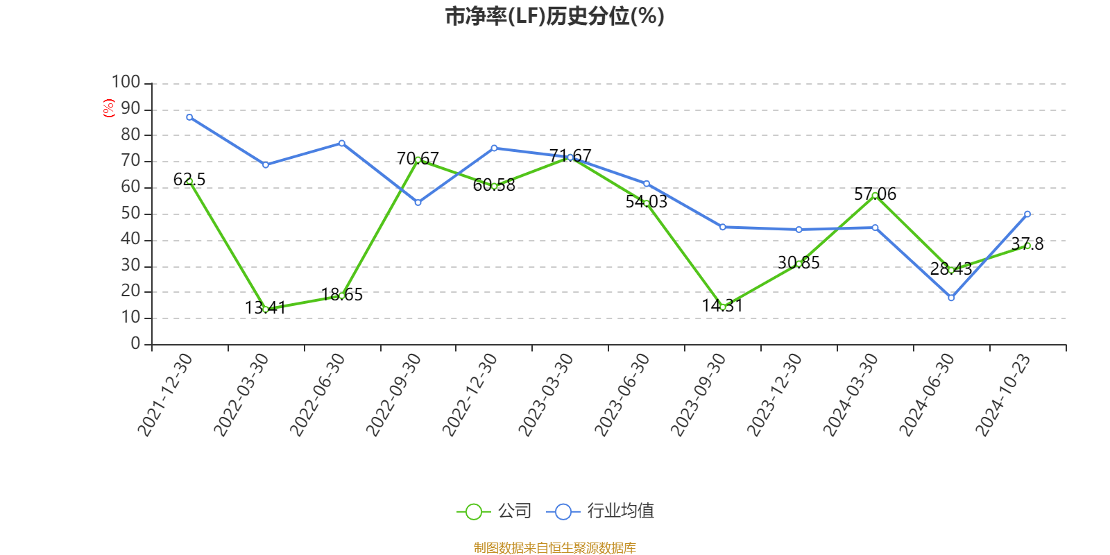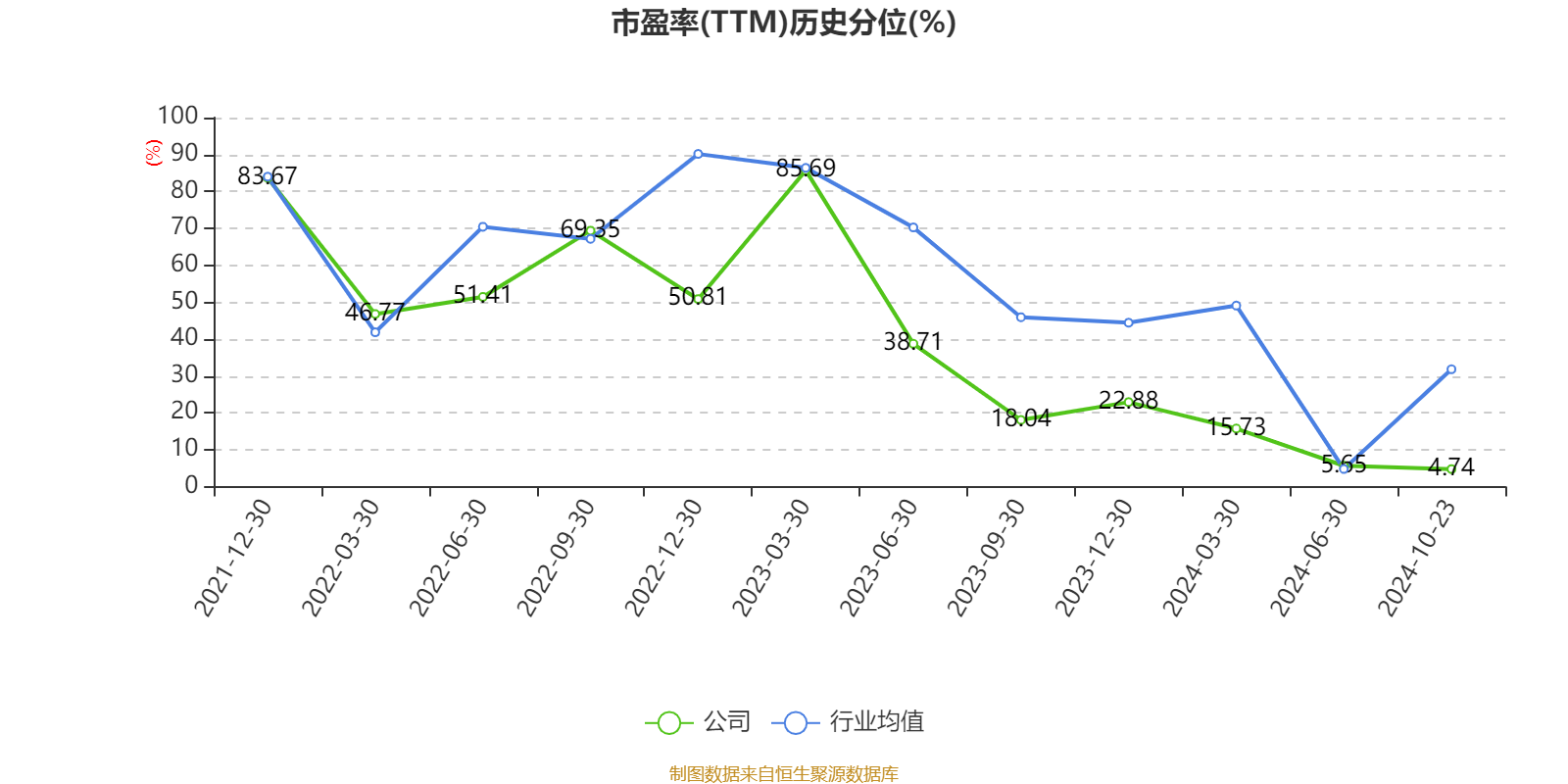 市盈率、市净率为负时,不显示当期分位数,会导致折线图中断。