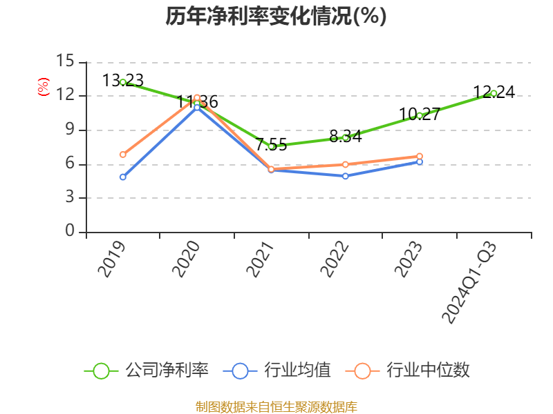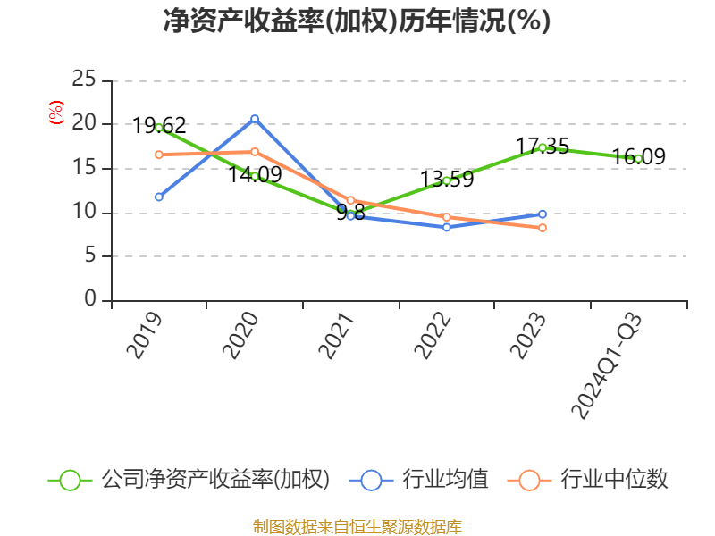 盈利能力方面, 2024年前三季度公司加权平均净资产收益率为16.09%,同比上升4.67个百分点。公司2024年前三季度投入资本回报率为13.55%,较上年同期上升2.68个百分点。