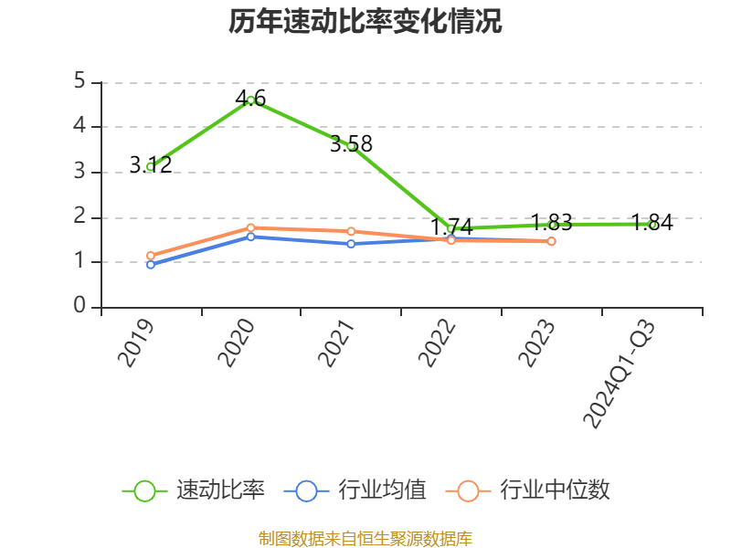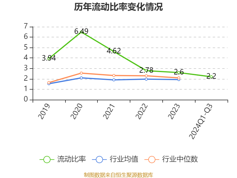 2024年前三季度,公司流动比率为2.2,速动比率为1.84。