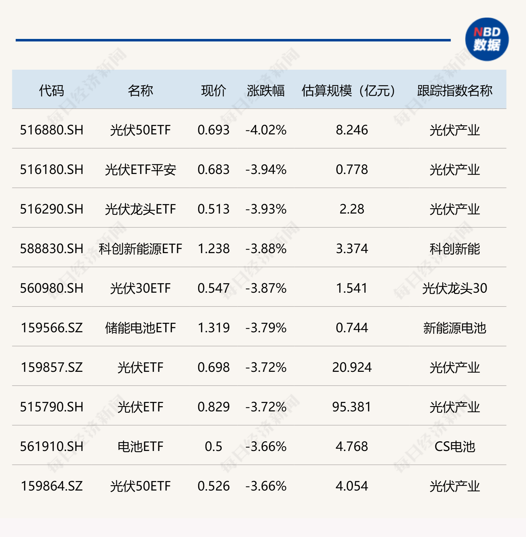 ETF今日收评 | 医疗器械ETF涨超2%,光伏相关ETF跌约4%
