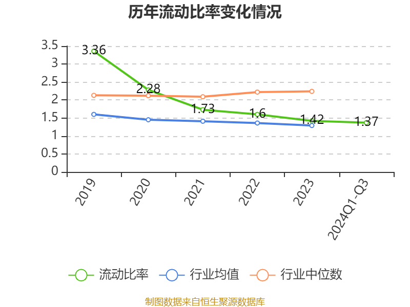 2024年前三季度,公司流动比率为1.37,速动比率为0.93。