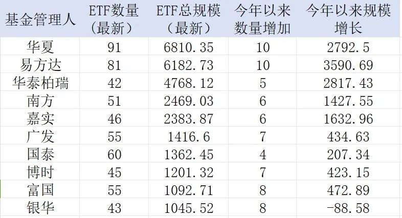 图:ETF资产规模排名前10位的公募明细单位:亿元来源:Wind,界面新闻整理