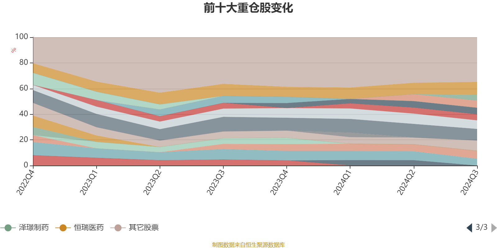 该基金持股集中度较高。截至2024年三季度末,基金十大重仓股分别是恒瑞医药、百济神州、诺诚健华、首药控股、迪哲医药、百利天恒、荣昌生物、甘李药业、科伦药业、泽璟制药。